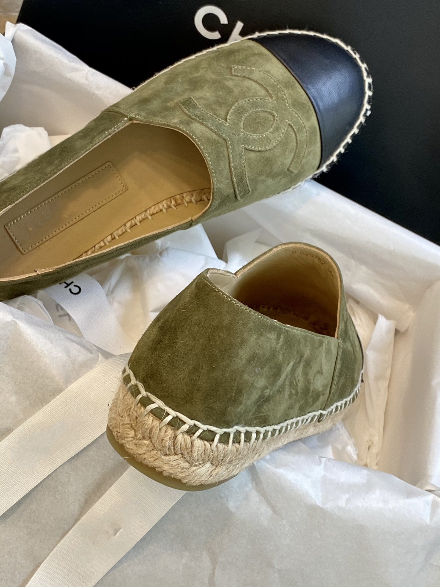 espadrilles khaki suede black lambskin