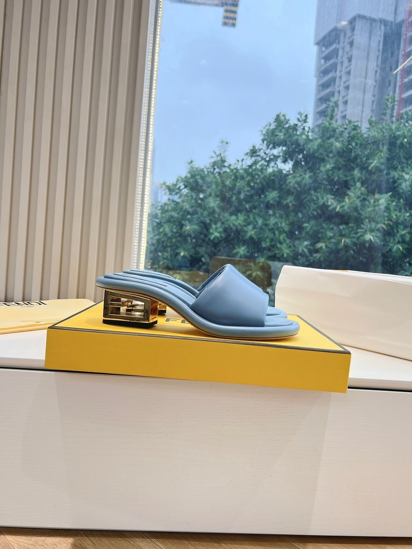 FF Baguette Slides Women 45 Nappa Leather Baby Blue