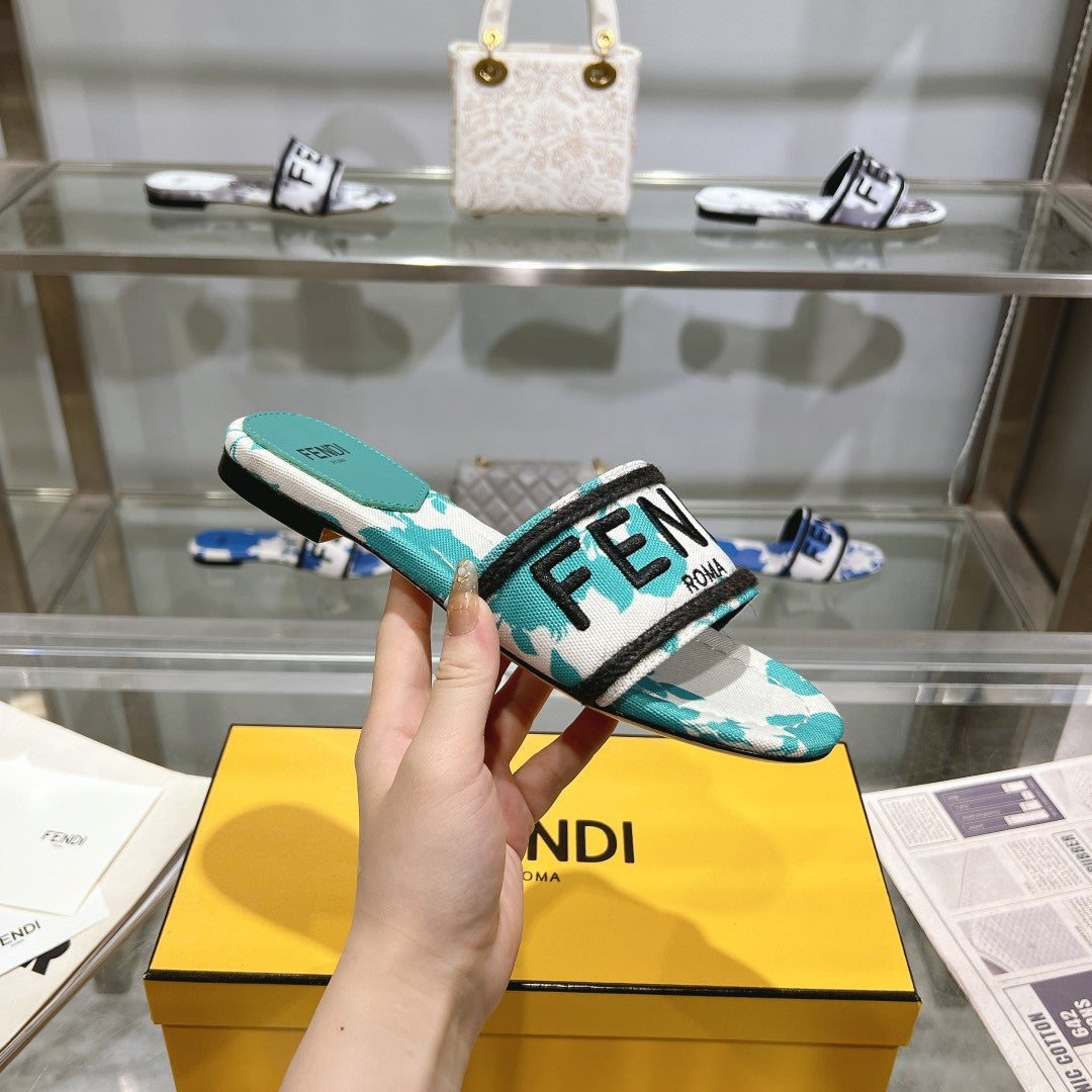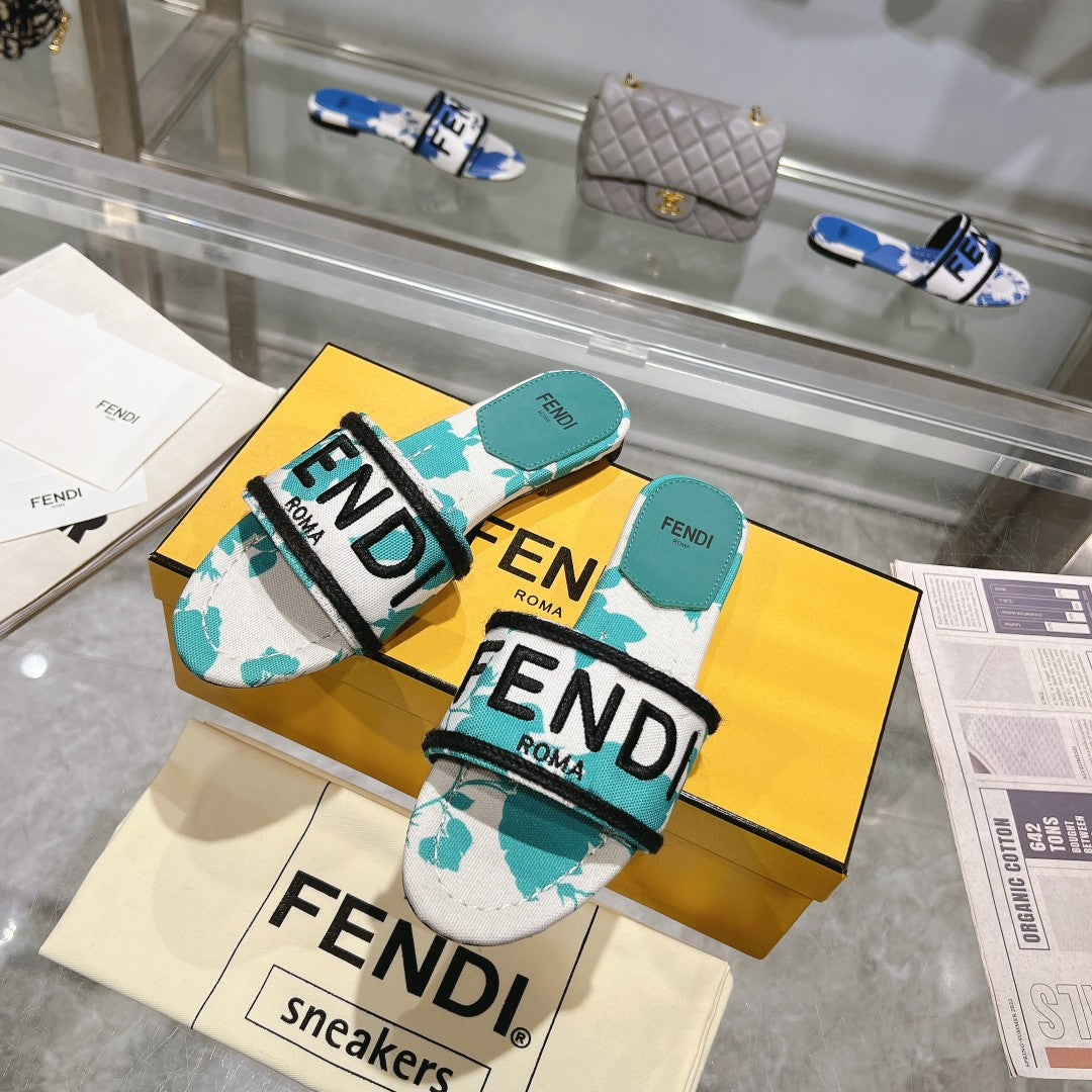 FF Women Signature Slides Turquoise White Canvas Slide