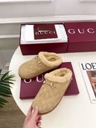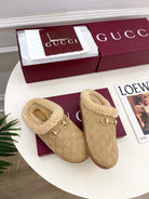 GG Horsebit Embossed Mule Beige Suede And Wool 536053