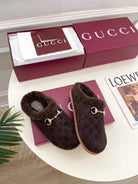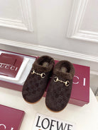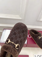 GG Horsebit Embossed Mule Dark Brown Suede And Wool 536052