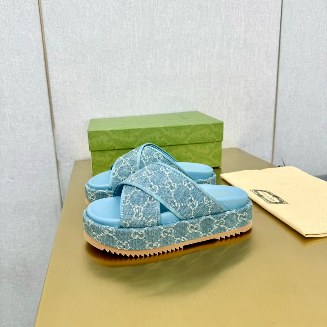 GG SLIDE SANDAL SKY CANVAS CROSS STRAPS