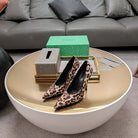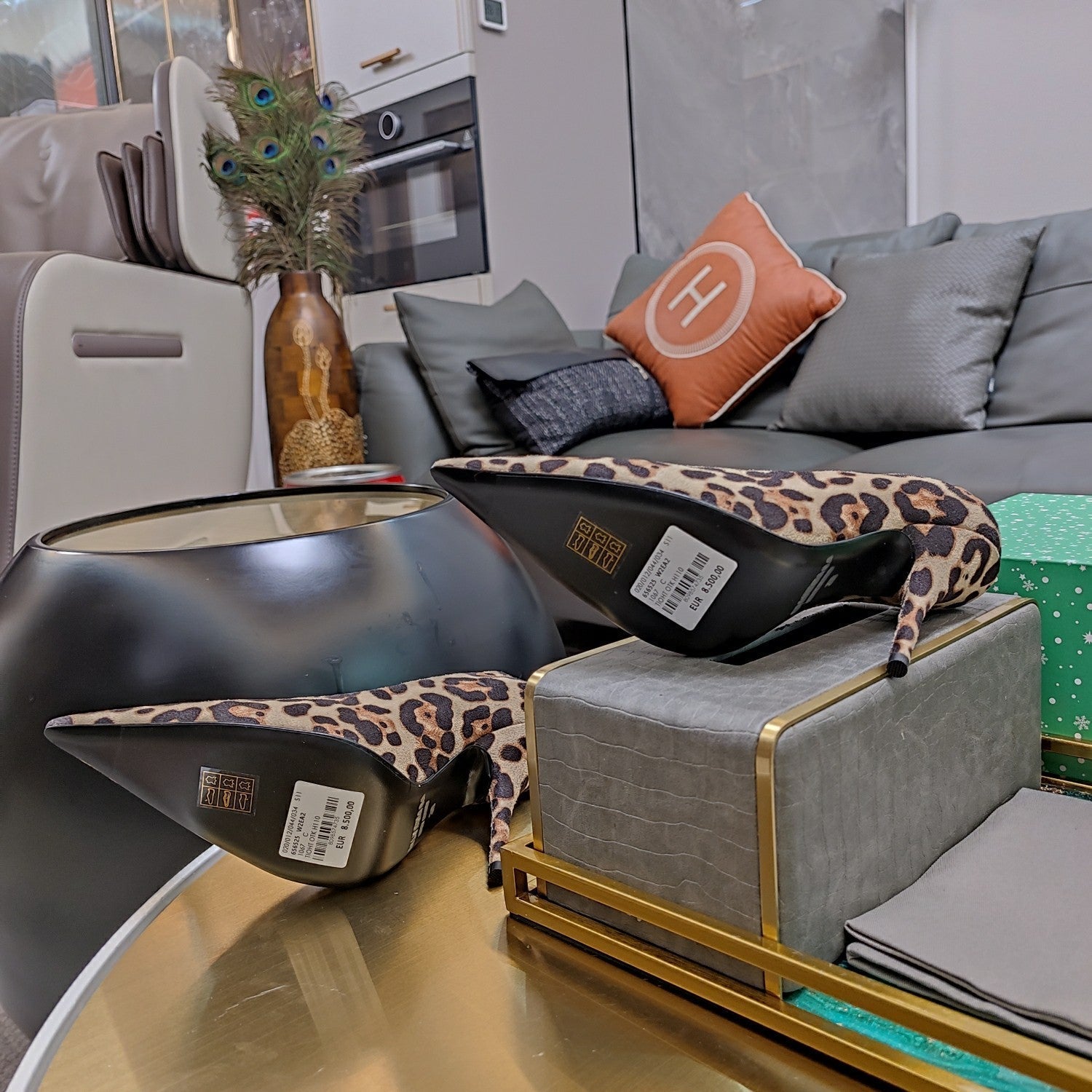HIGH PUMPS IN BEIGE LEOPARD PRINT SUEDE