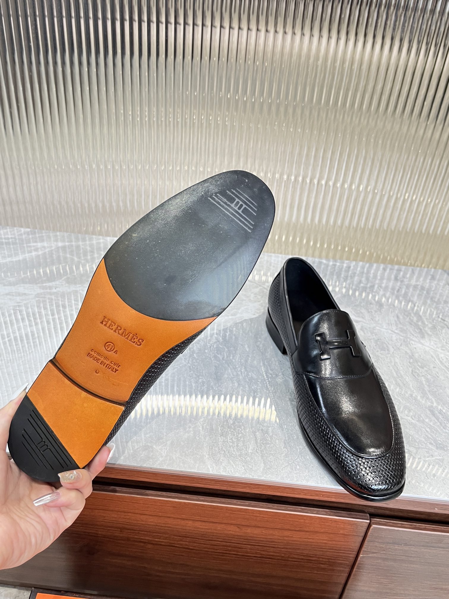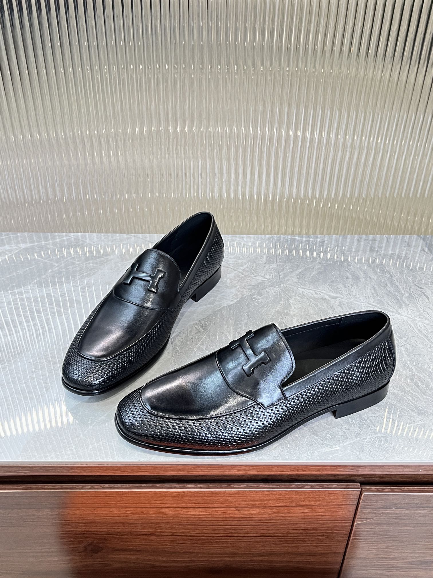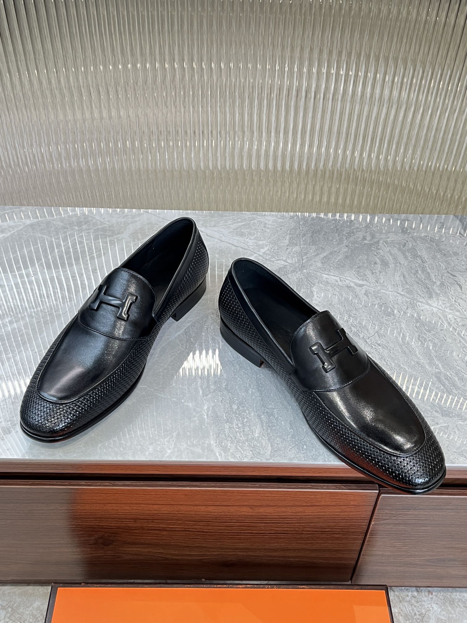 HM BLACK H-BUCKLE LOAFER BLACK CALFSKIN