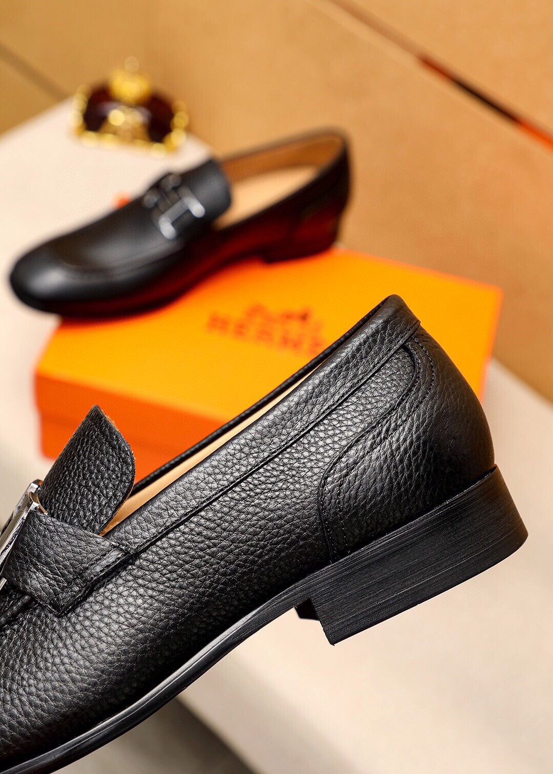 HM BLACK H-BUCKLE LOAFER BLACK GRAINED CALFSKIN