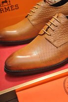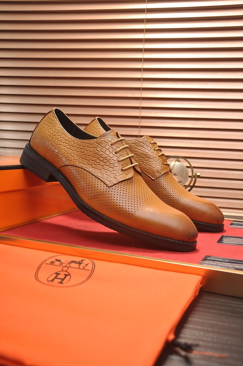 HM BUSINESS LACE UP SHOES BRONZE CALFSKIN WITH MESH MOTIF
