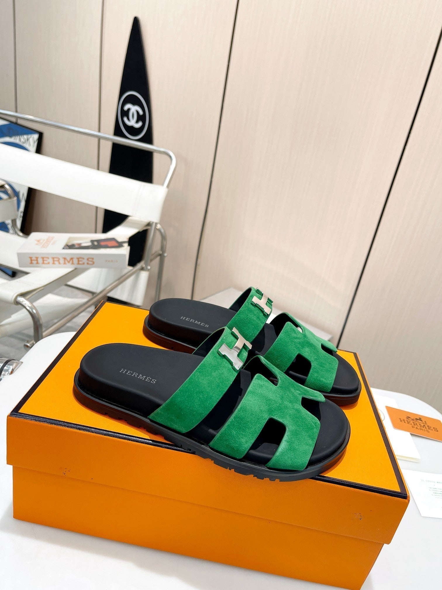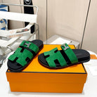 HM CHYPRE SANDAL DARK GREEN WITH H-BUCKLE SUEDE