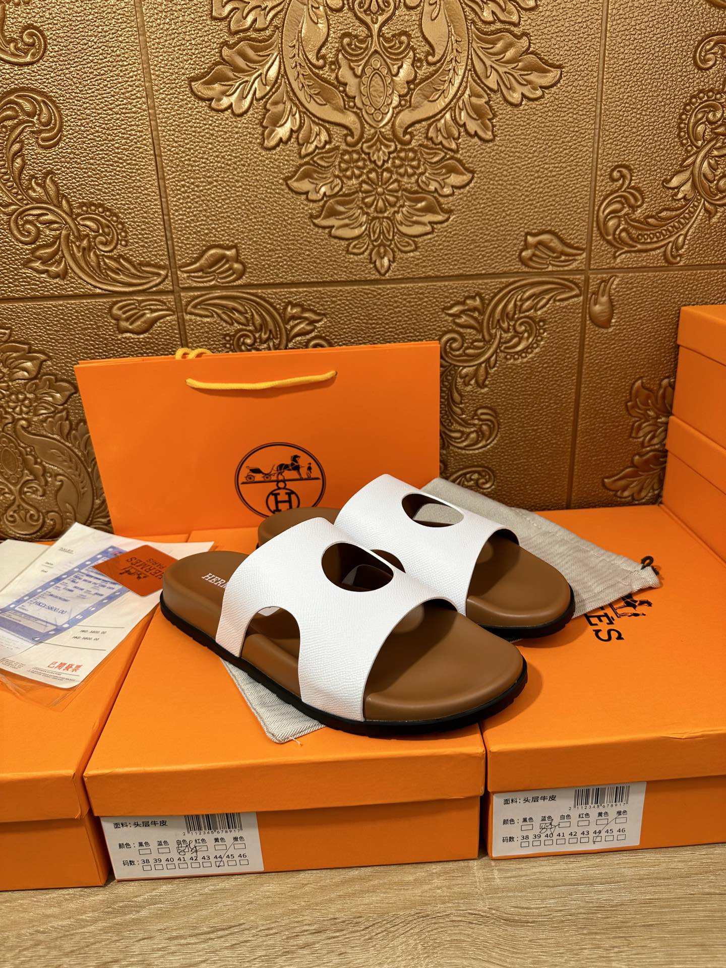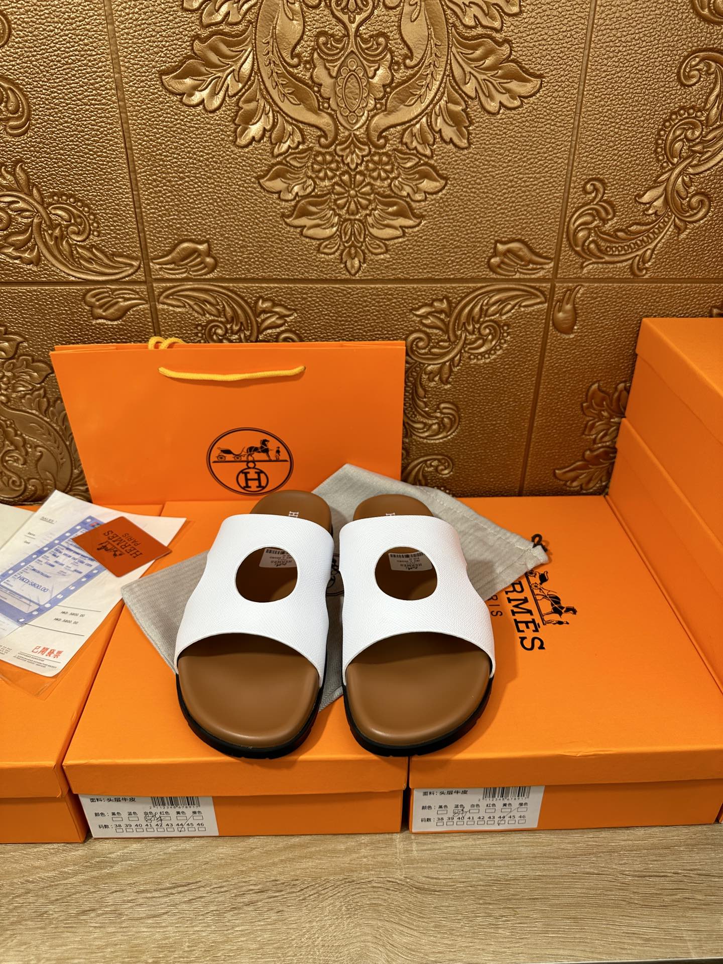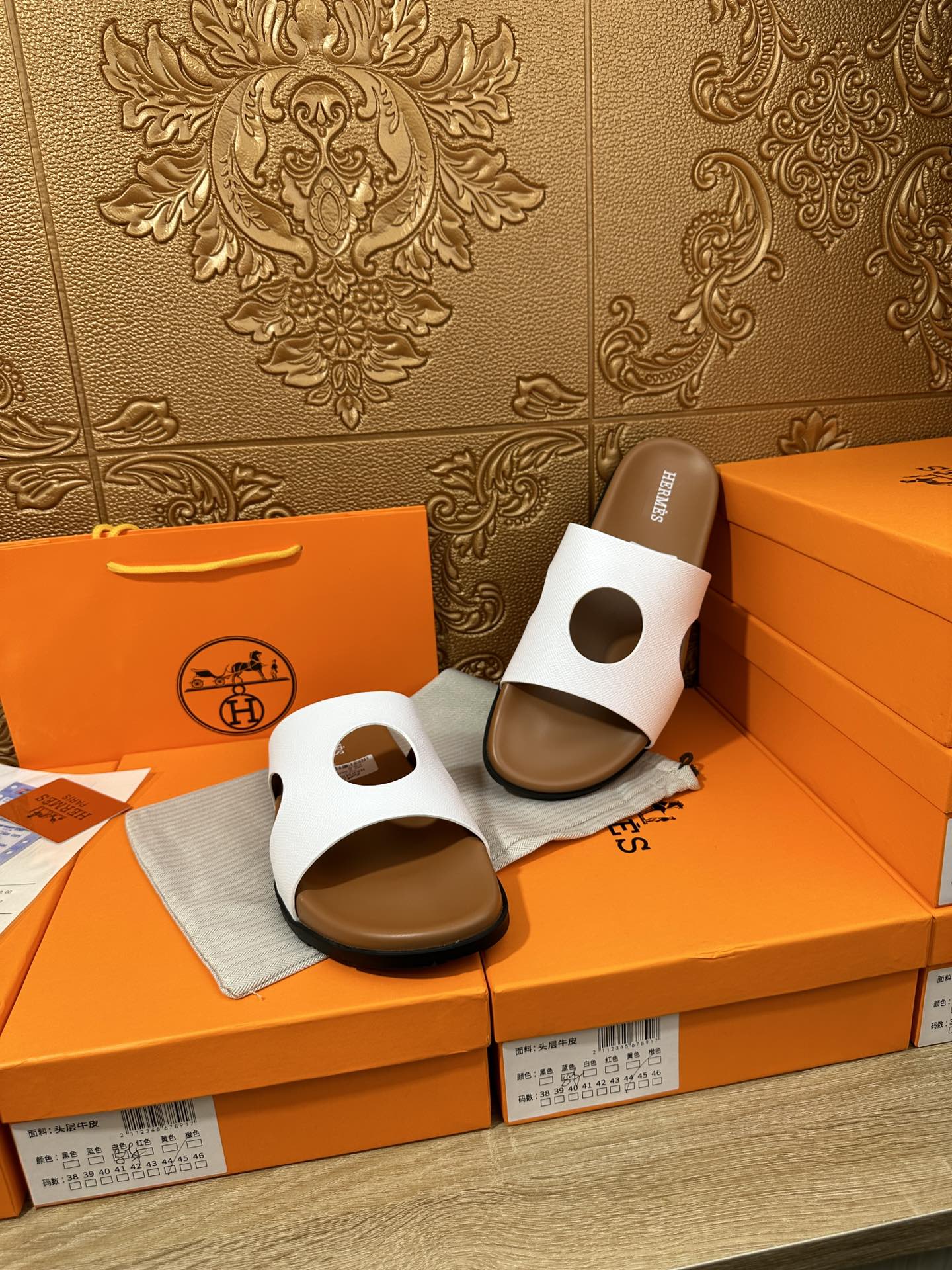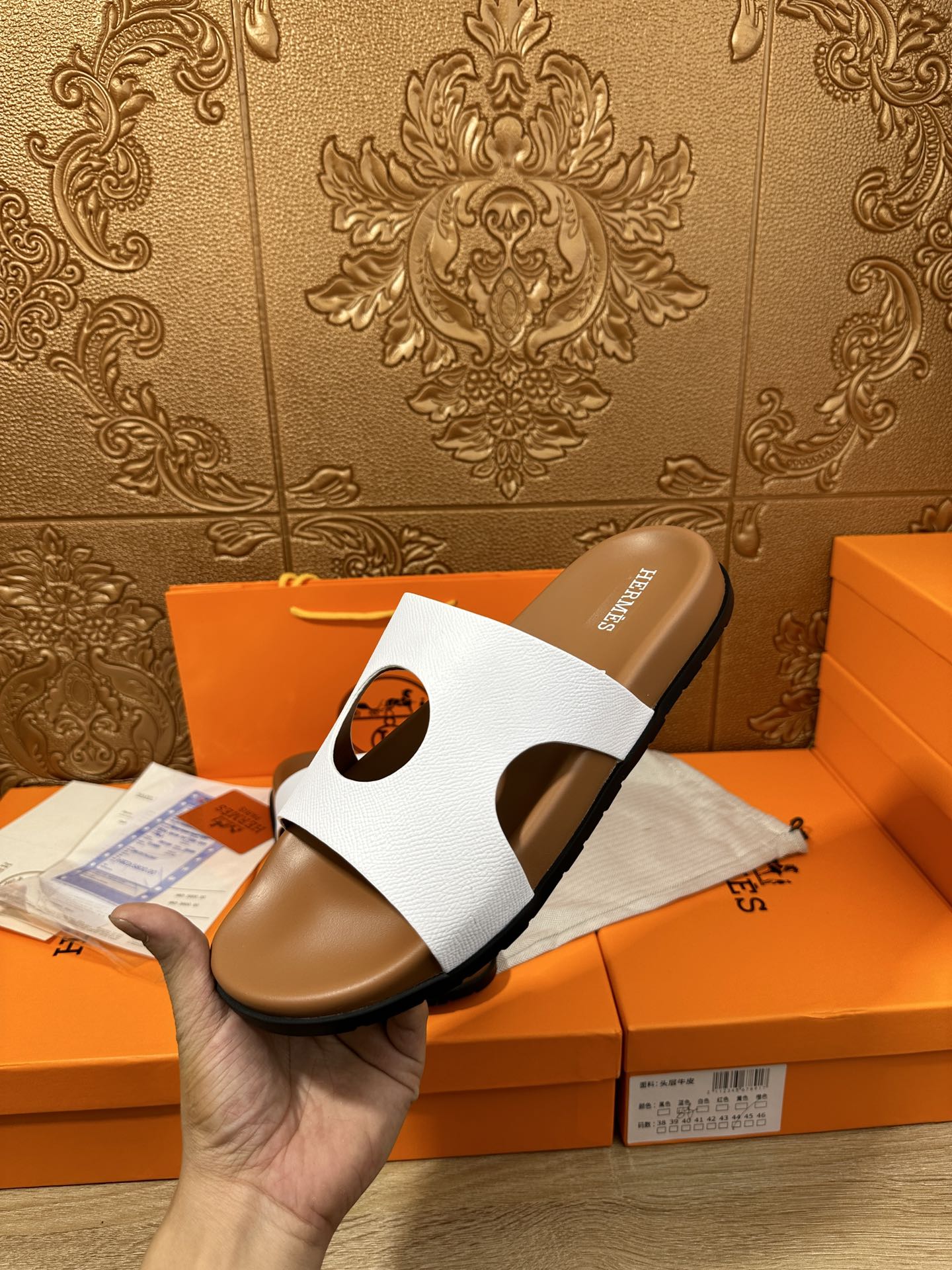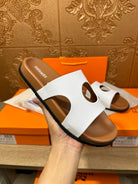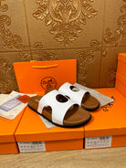 HM CIRCLE CUT SANDAL WHITE AND CARAMEL CALFSKIN