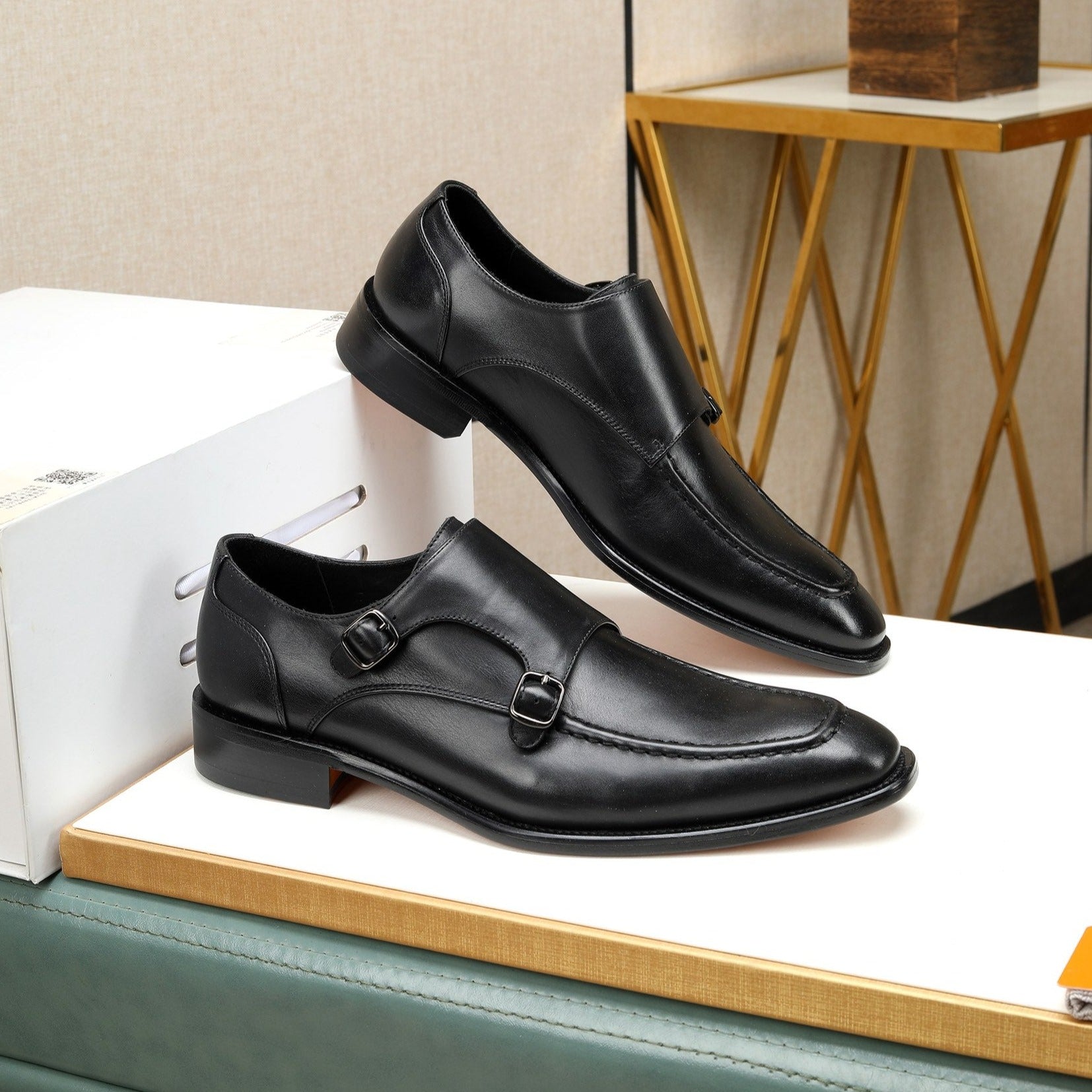 HM DOUBLE MONK STRAP BLACK CALFSKIN