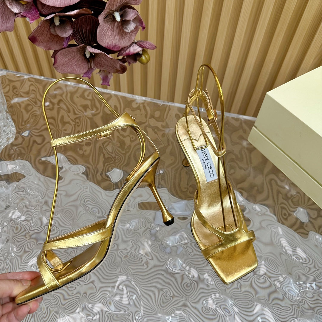 Jimmy Azie 85 In Gold Cowhide Sandals 581517