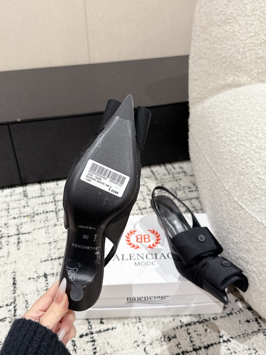 KNIFE CHEMISE 45MM SLINGBACK IN BLACK COTTON AND CALFSKIN