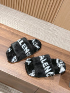 LAMB WOOL SLIPPER BLACK AND WHITE