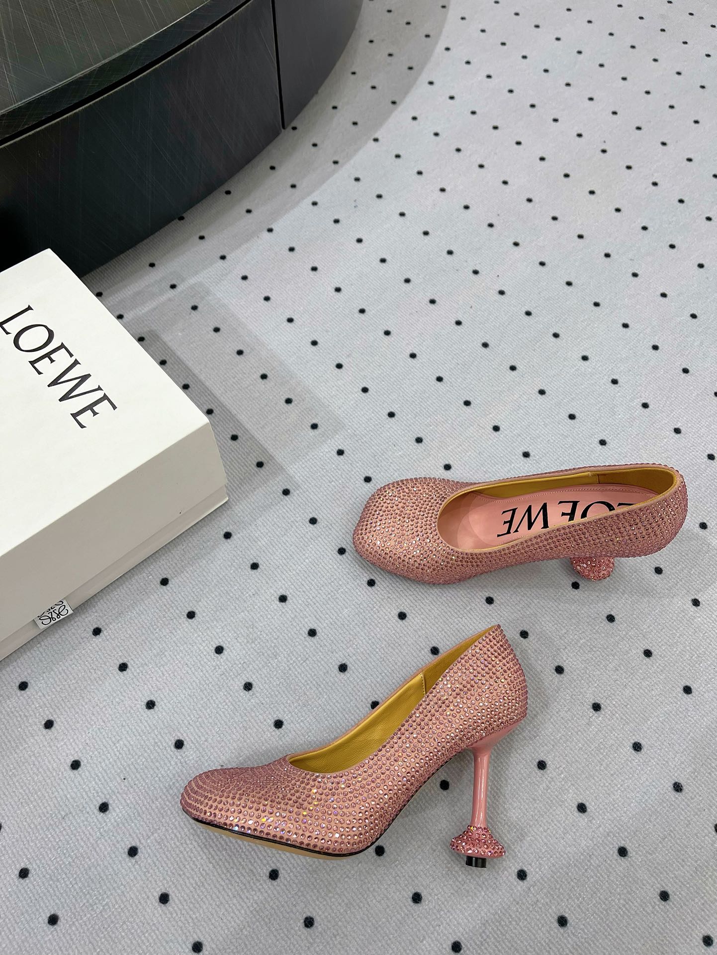 - Material: suede and allover rhinestones