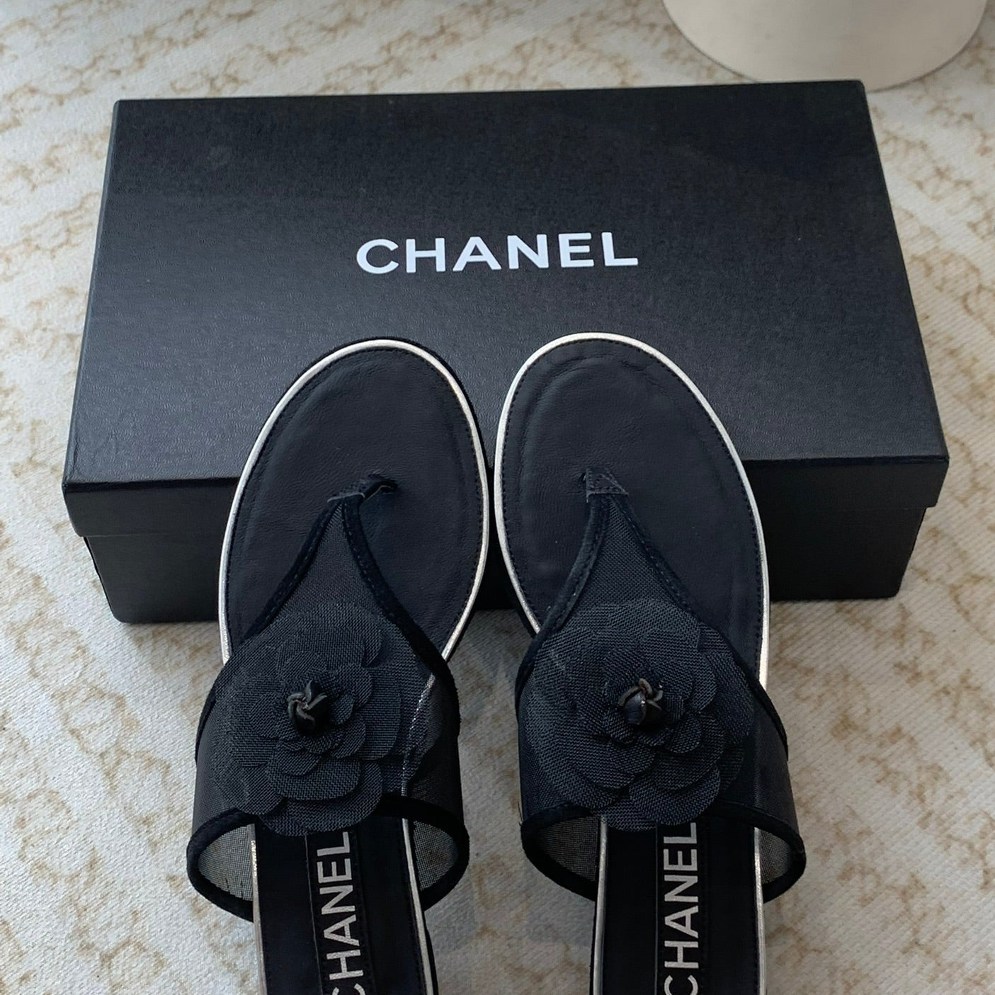 camellia thong sandal black lace