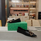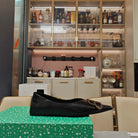 POINTED BALLET FLATS IN BLACK SHINY CRACKED SHEEPSKIN