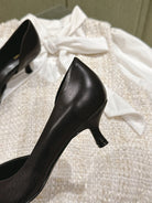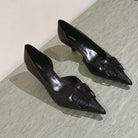 POINTED BB BLACK BUCKLE KITTEN HEEL PUMPS IN BLACK SMOOTH LAMBSKIN
