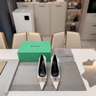 POINTED BB GOLD BUCKLE HIGH PUMPS IN WHITE CROCODILE PATTERN CALFSKIN