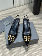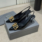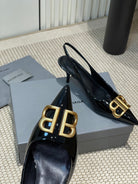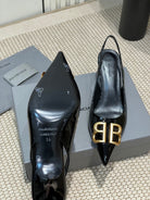 POINTED BB GOLD BUCKLE HIGH SLINGBACK 60MM IN BLACK PATENT CALFSKIN
