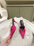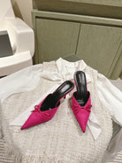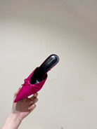 POINTED HIGH MULES WITH BOW IN HOT PINK SILK
