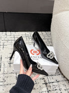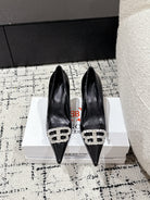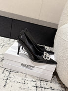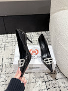 POINTED HIGH PUMPS IN BLACK PATENT CALFSKIN WITH CRYSTAL BUCKLE