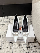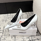 POINTED HIGH PUMPS IN WHITE PATENT CALFSKIN WITH CRYSTAL BUCKLE