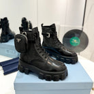 PRA MONOLITH BRUSHED AND RE-NYLON BOOTS WITH POUCH TWINKLE BLACK CALFSKIN