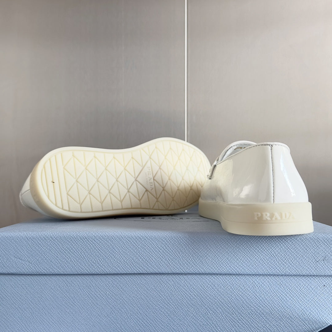 Pra White Patent Leather Loafers 25mm Rubber Sole