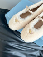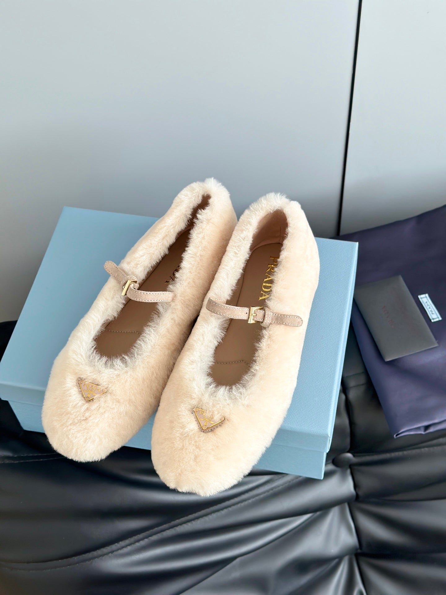 Prada 25s Mary Jane Ballet Flats White Wool 538456