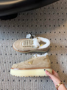 Prada 25s Mid-Top Sneaker Beige Suede And Wool 538436