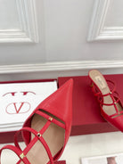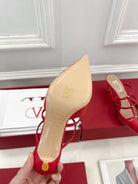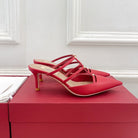 Rockstud Wispy Red Calfskin Mule 60mm