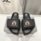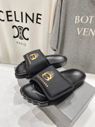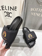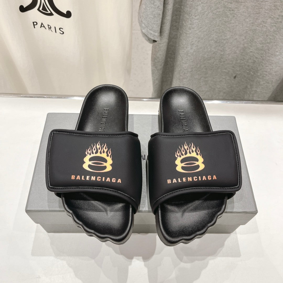 SLIDE SANDALS IN BLACK NYLON AND RUBBER YELLOW PRINT