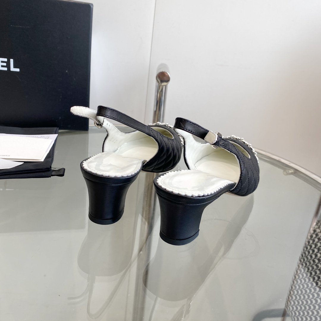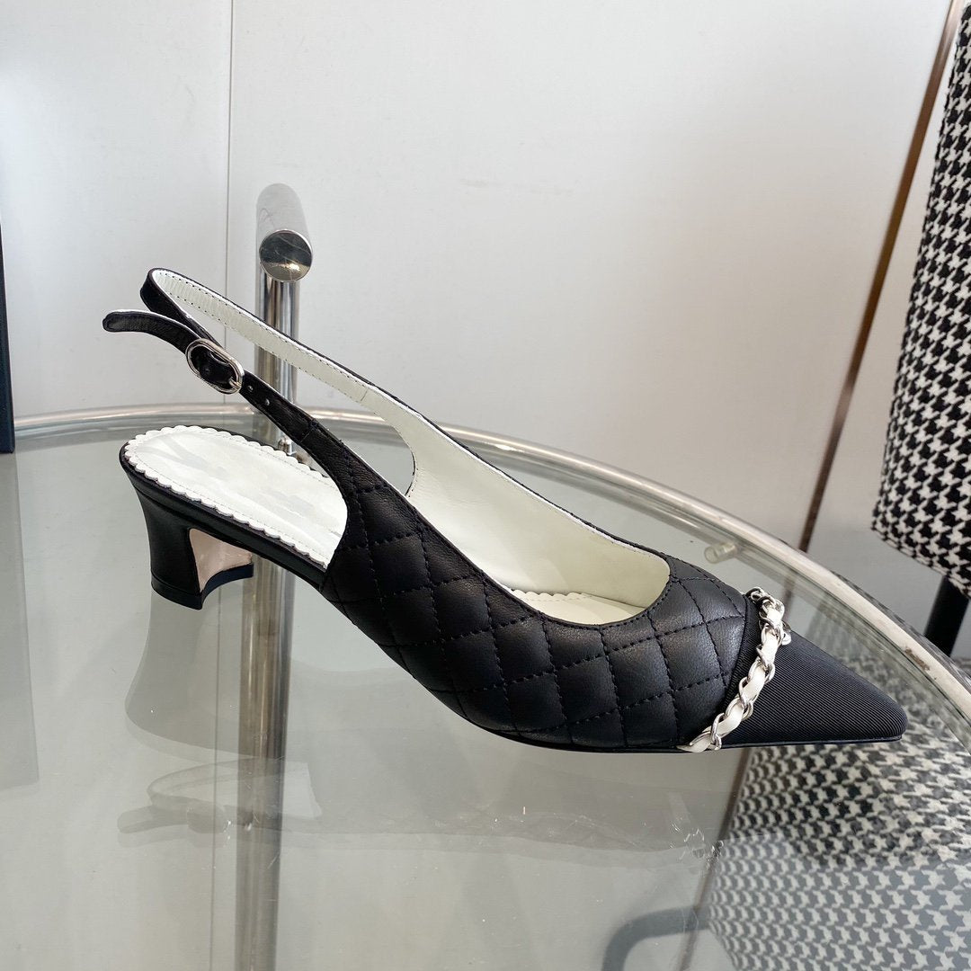 slingbacks pumps 45 black quilted calfskin grosgrain