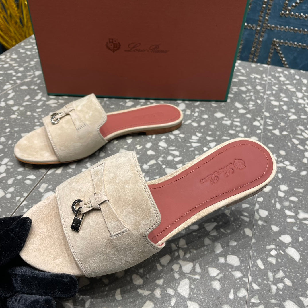 Summer Charms Sandals in Light Taupe Suede Maroon Lambskin