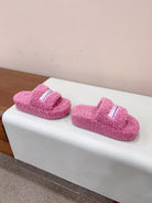 THICK-SOLED SLIPPERS IN PINK WOOL