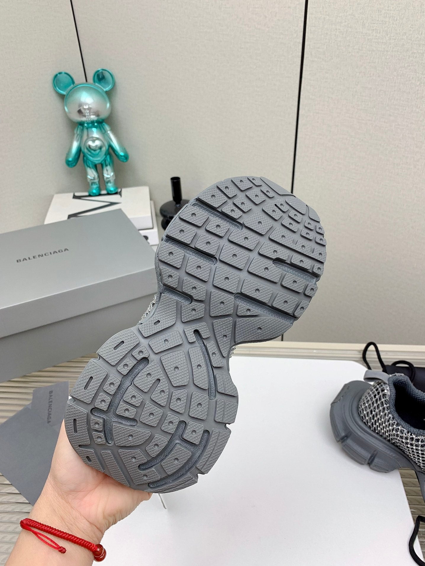 XL FISHNET SNEAKER IN GRAY MESH, POLYURETHANE, POLYESTER WITH RHINESTONES