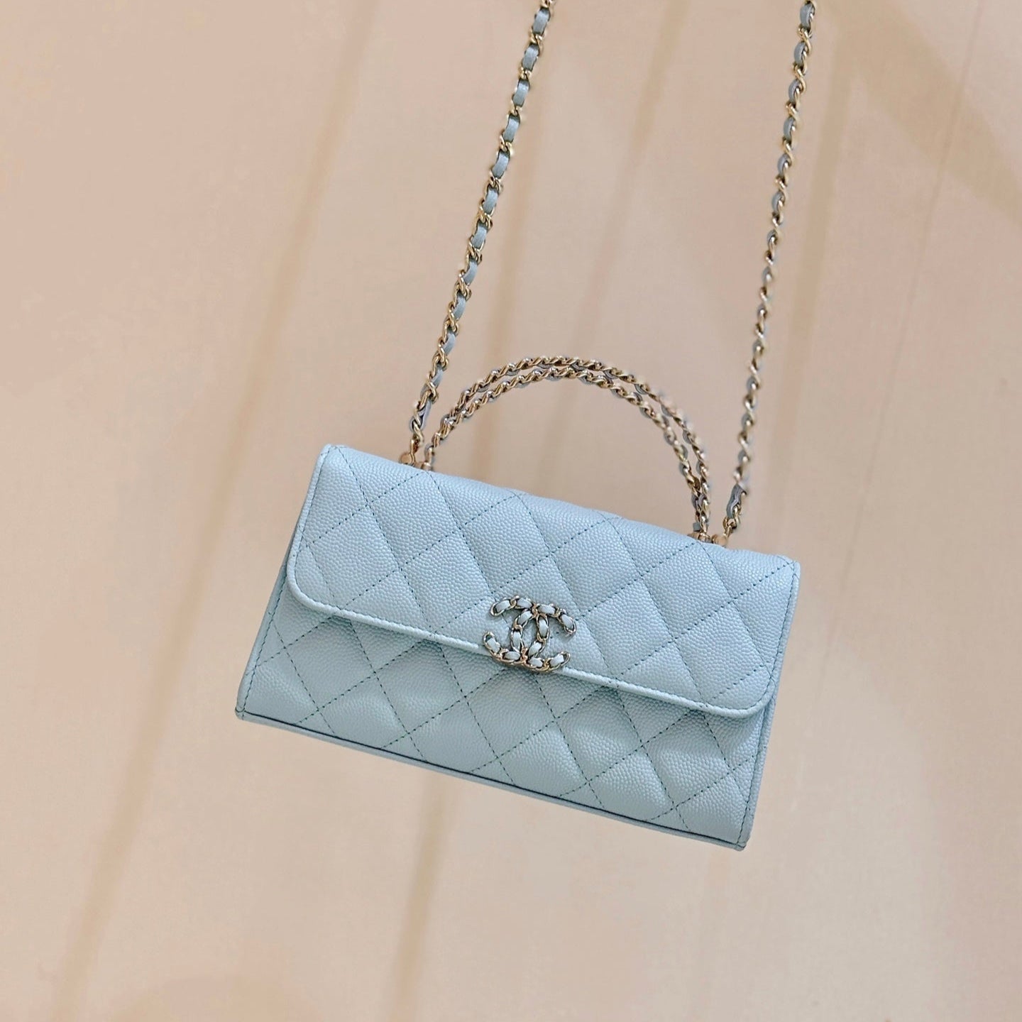 CC 25S Kelly Bag Top Handle 18cm Cloud Blue Grained Calfskin