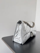 CRUSH CHAINED BAG 25 IN SILVER METALLIC QUILTED CRUSHED CALFSKIN