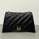 CRUSH MEDIUM CHAIN BAG 31 IN BLACK QUILTED CRUSHED CALFSKIN GOLD HARDWARE
