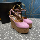 ALAIA WEDGE PUMP 15 CM IN NEON PINK LAMBSKIN AND BEIGE RUBBER