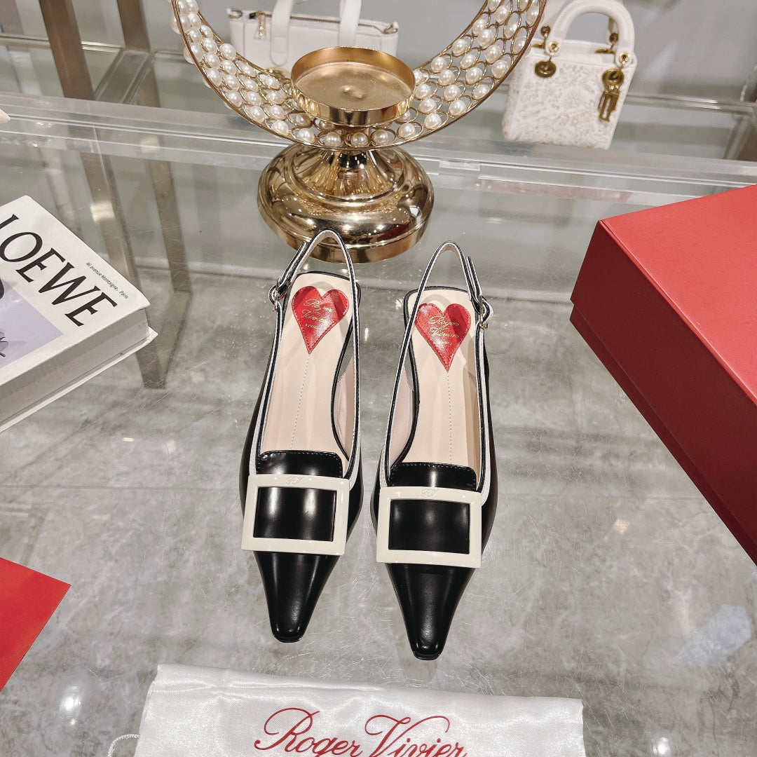 Belle Viv Metal Buckle Slingback Pumps 65 Black White Patent Leather