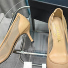CC Pumps 50 Beige Mesh Leather Pointed Toe