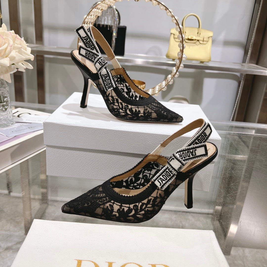 cd slingback pumps 95 transparent mesh embroidered black butterfly motif