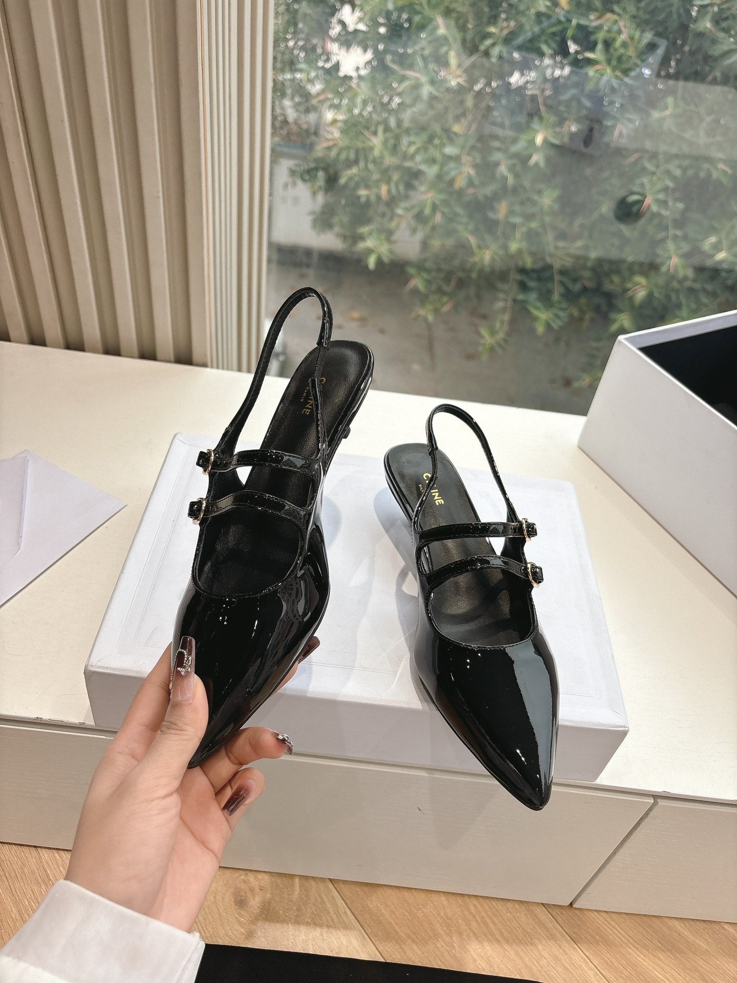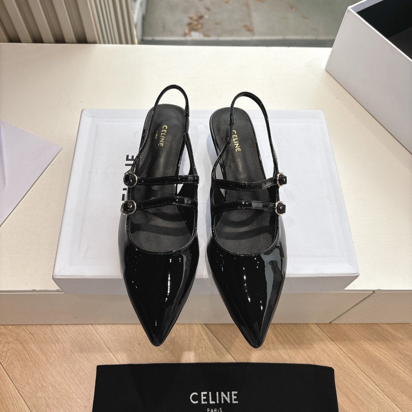 CELINE Slingback Black Patent Leather 285949