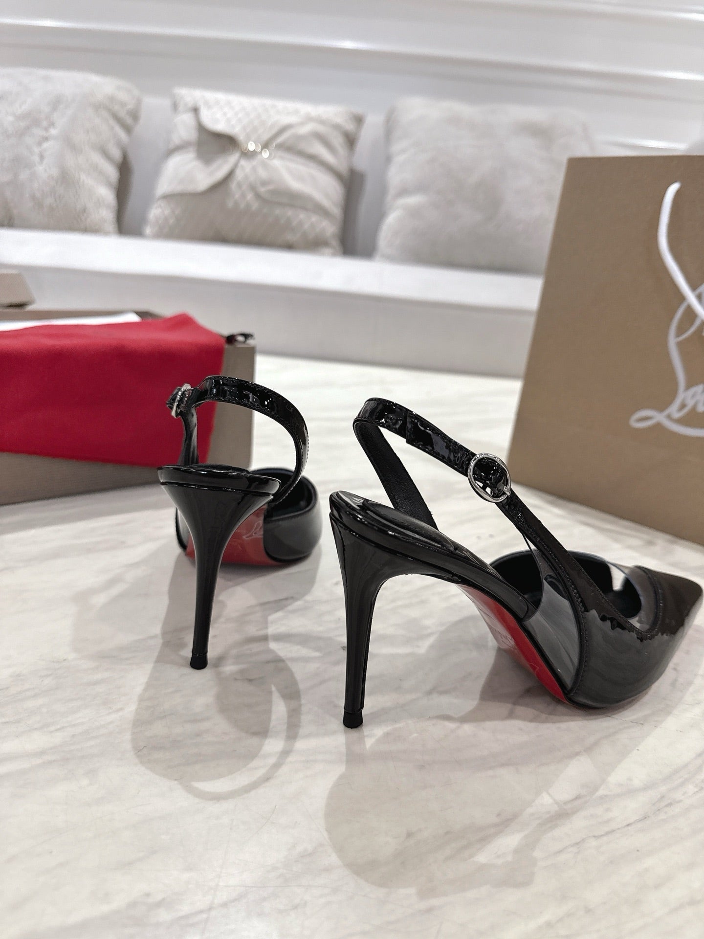 CL 25 Slingback Sandals Black PVC Gloss Calfskin 307531