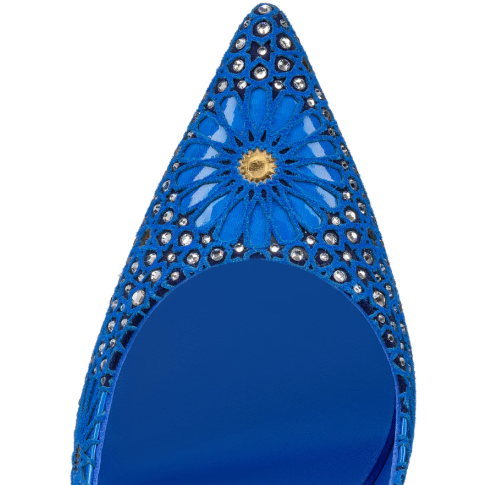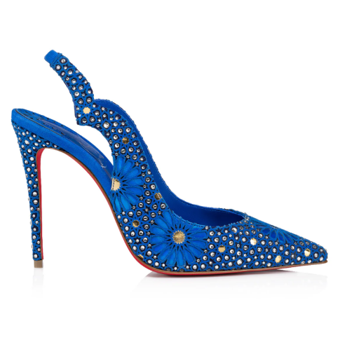 CL Hot Chick Sling Moucharastrass Pumps 70mm Calf Leather Electric Blue