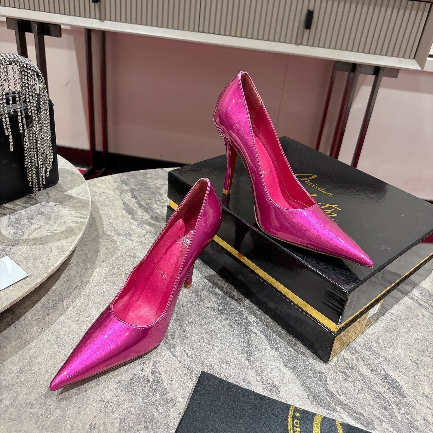 CL Kate Pumps 100mm Pink Shiny Calfskin 345987