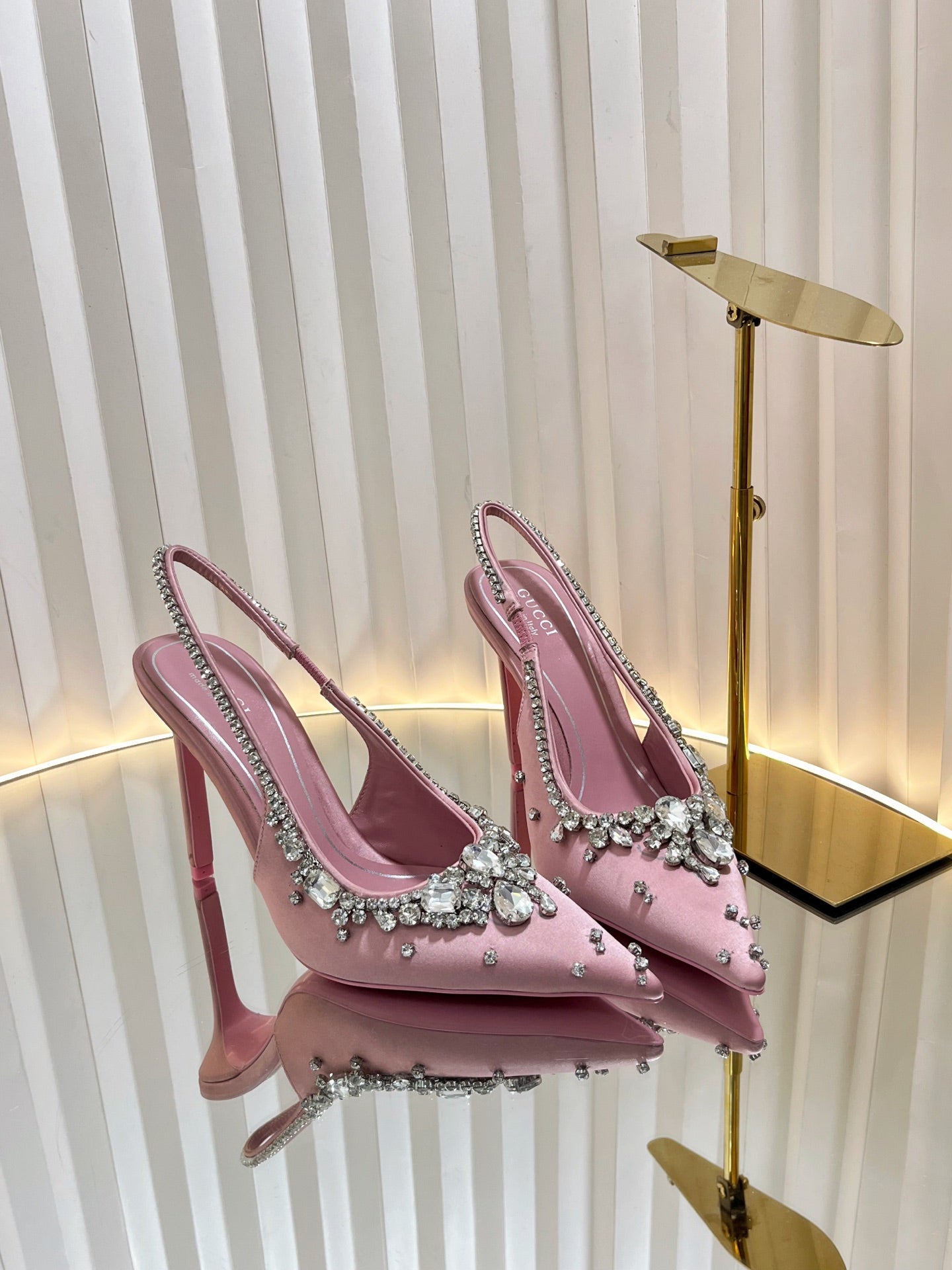 GC 2025 Crystal Embellished High Heels Slingbacks Pink Silk Sheepskin 294524