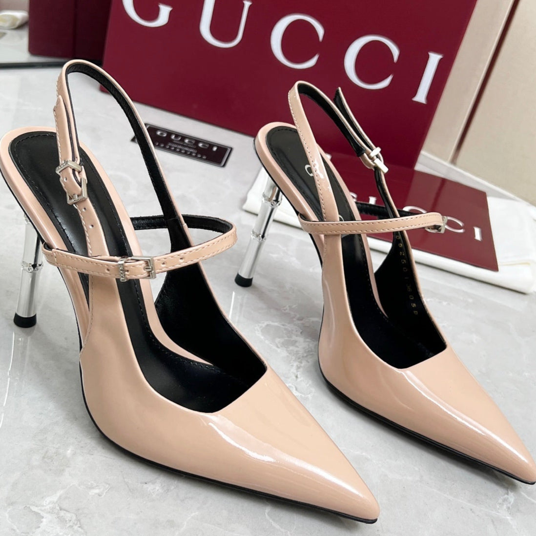 GC 25 Heeled 95mm Slingback Pump Nude Patent Leather 293866