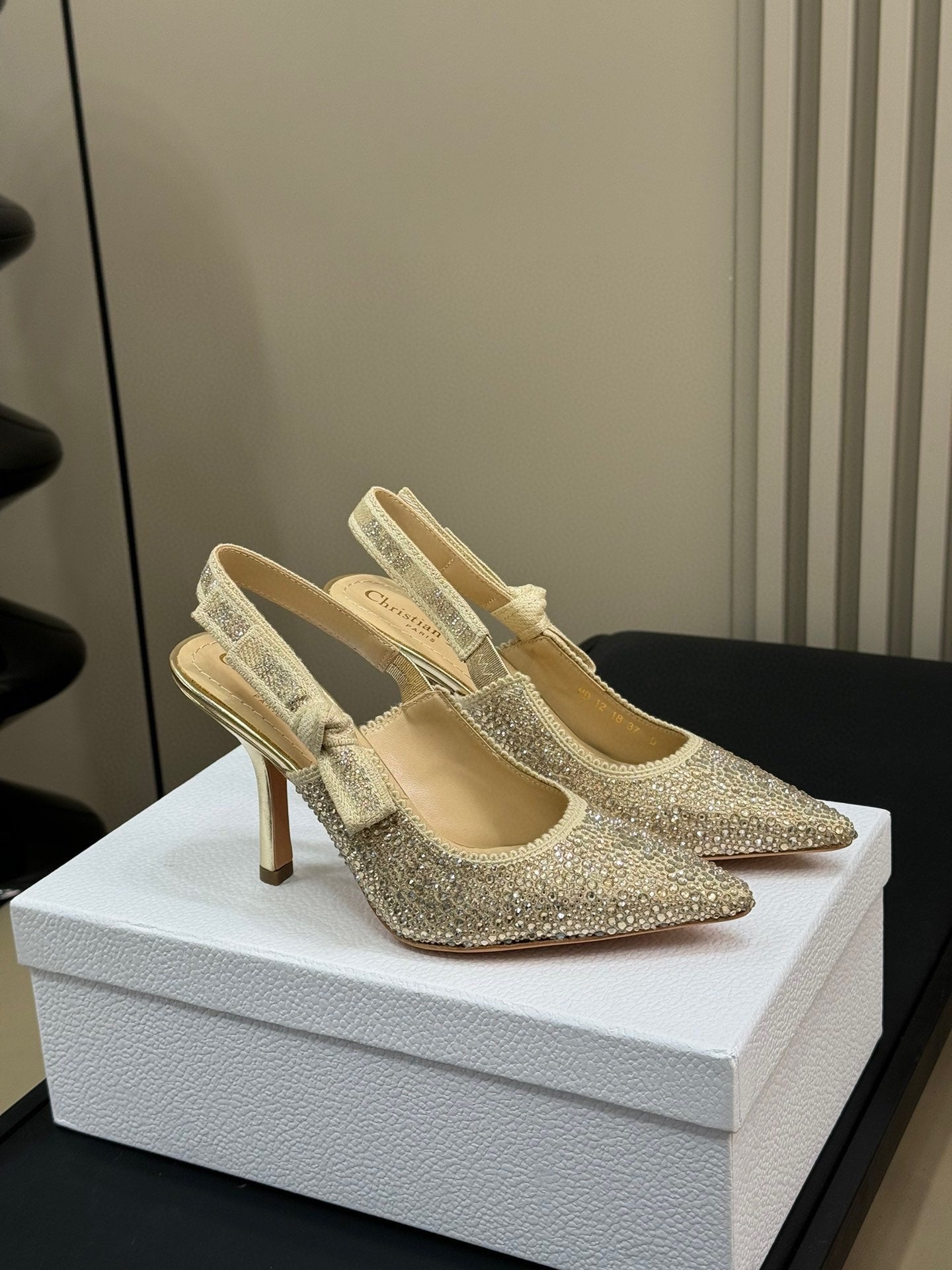 J'Adior Slingback Gold-tone Cotton Microbeads