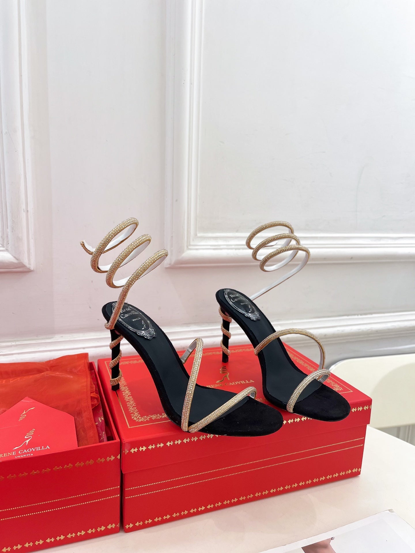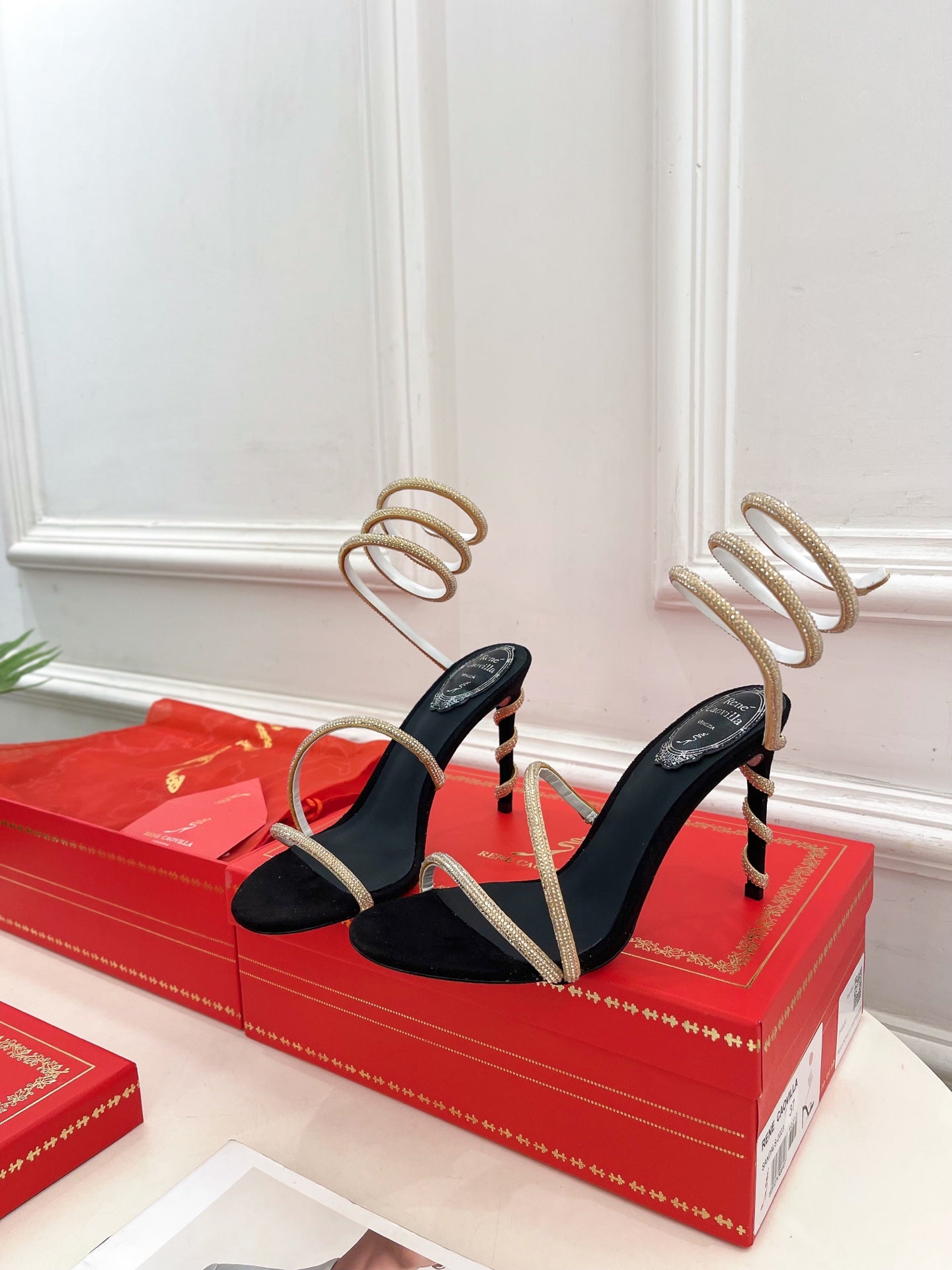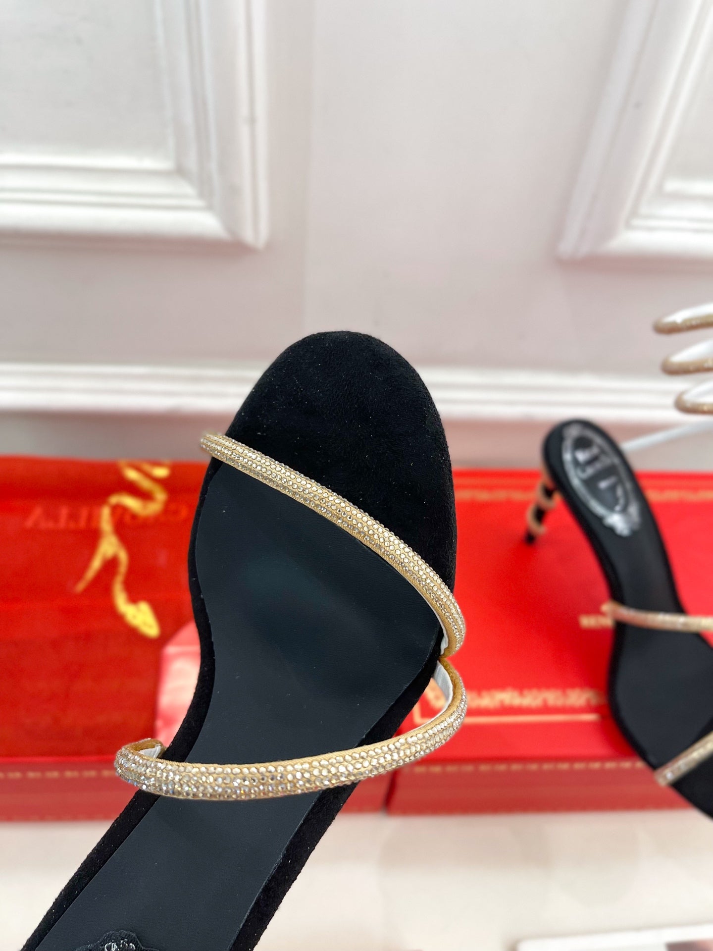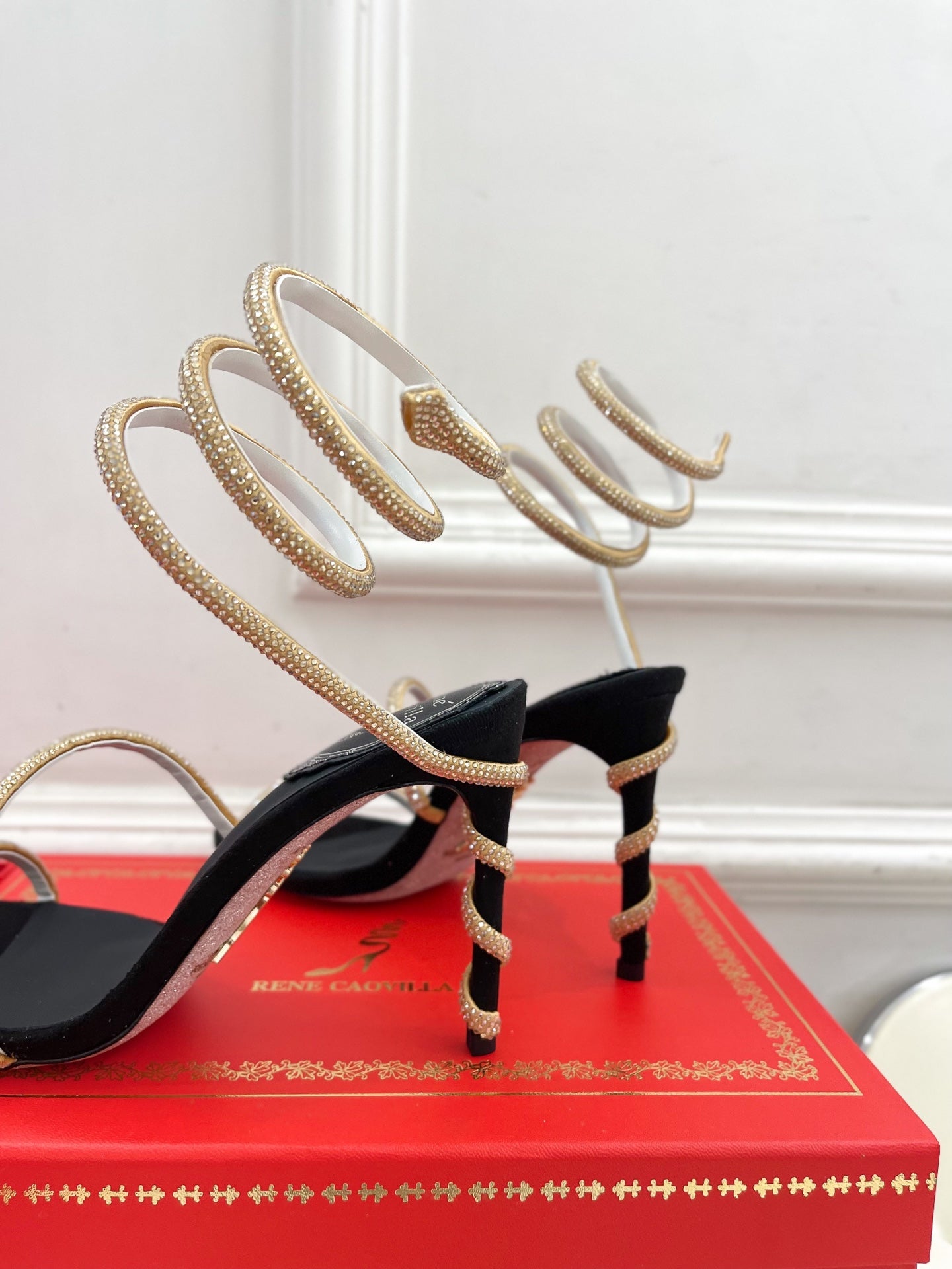 RC 25 Crystal Diamond Snake-Shaped High-Heeled Black Gold Silk Rhinestones 253544